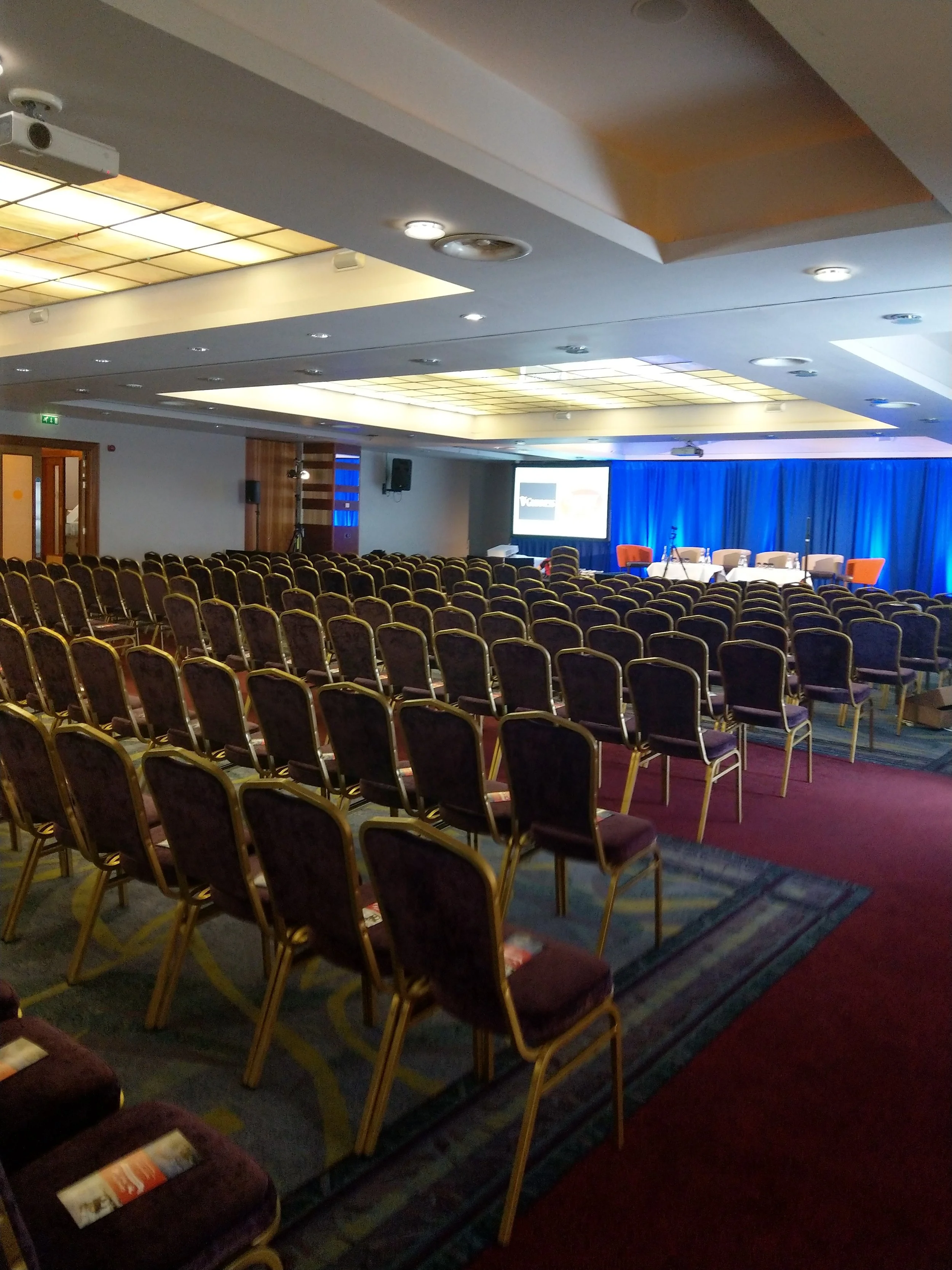The first thing that we did was to get to grips with the size and space of the room. We took the necessary measurements, found out the expected attendance and how many speakers would be on stage. After this initial step we could progress with the next stage.