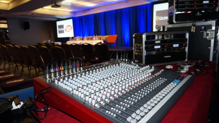 We set up a total of 12 speakers with stands to allow every word and sound to be heard by all within the room. In order to ensure complete audio clarity, we made full use of a variety of audio devices.